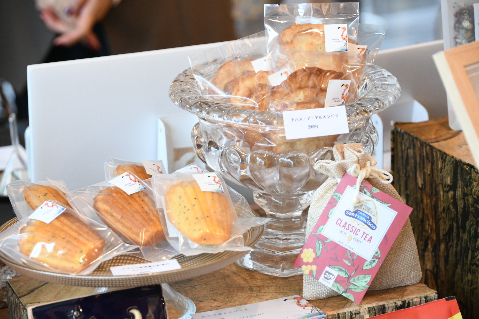 毎月のテーマに合わせて、ハンドメイドクラフトやアクセサリー、お菓子などをご用意し、グランジャポンが輸入している🇪🇸スペイン食材も試飲試食しながらお買い物をして頂けます。
