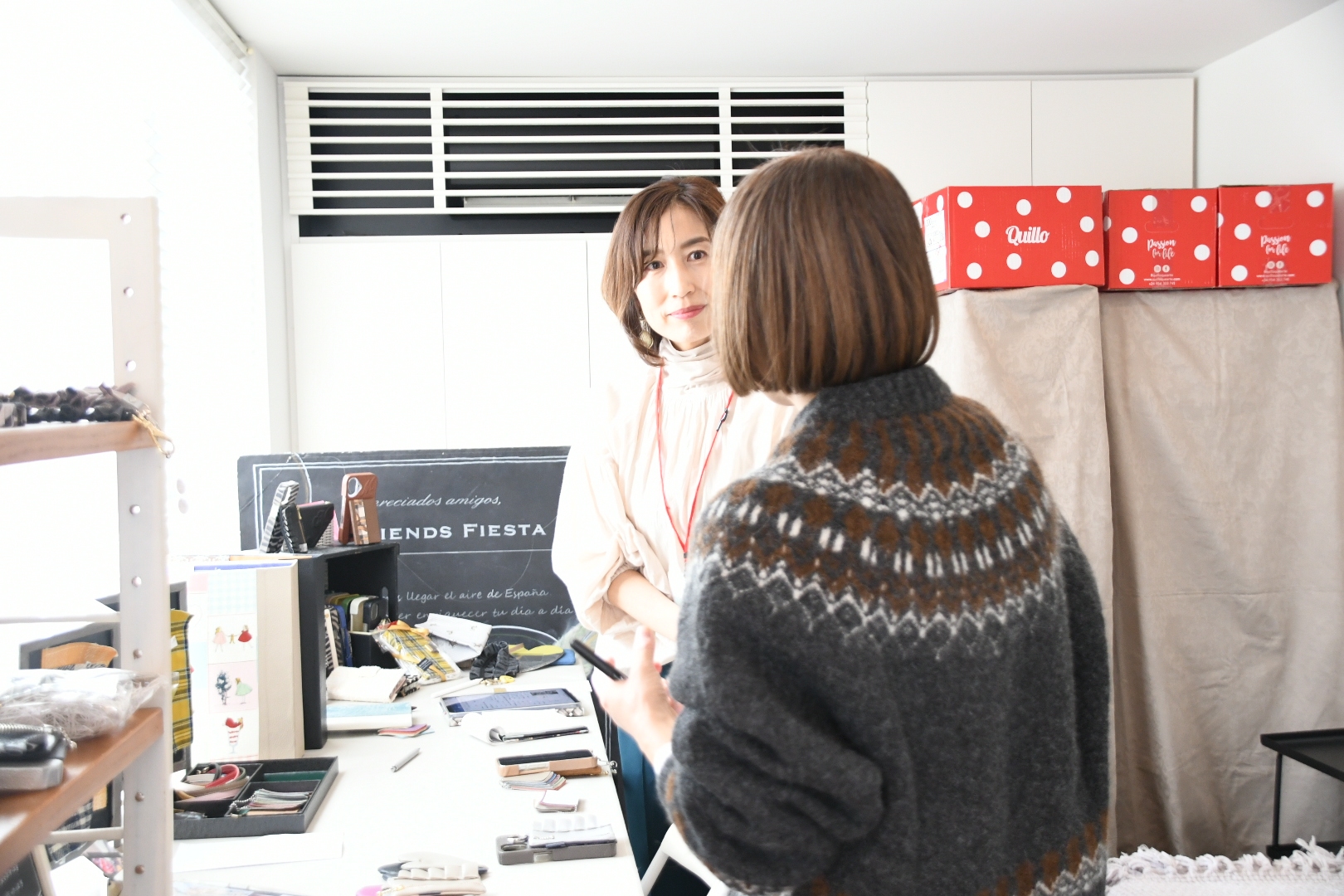 毎月のテーマに合わせて、ハンドメイドクラフトやアクセサリー、お菓子などをご用意し、グランジャポンが輸入している🇪🇸スペイン食材も試飲試食しながらお買い物をして頂けます。